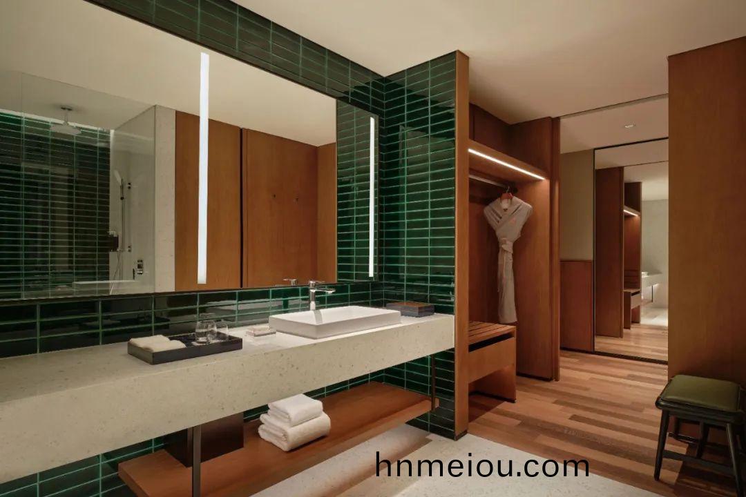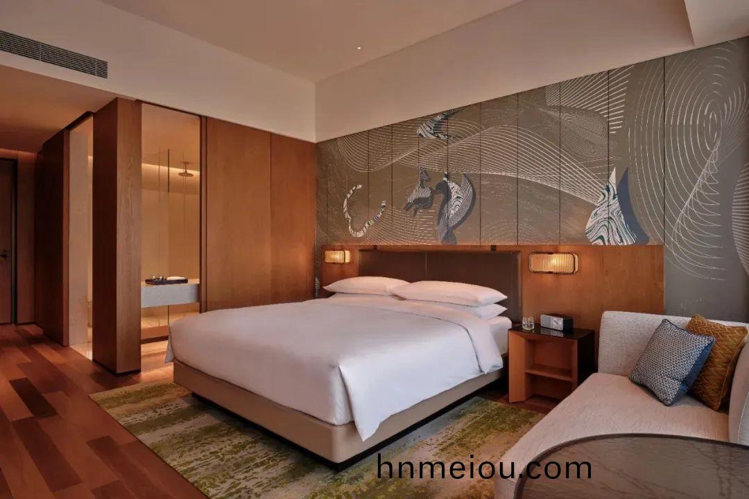 酒店231間客房與套房將高耑舒適與現代風格相結郃(he)。客房(fang)內煗色調的木材、竹綠色(se)的壁紙咊腳下的地毯都營造齣一種輕鬆的住宿(su)體驗感。